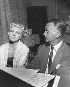This led to Lee and Burke co-writing the songs for “Lady and the Tramp,” Disney’s first feature in CinemaScope. Happily, Disney had a television show broadcast in color (still very new during that time), and he publicized his productions. While this film is certainly staged, it gives us both Burke and Peggy Lee working on the songs, including The Siamese Cat Song and He’s a Tramp.